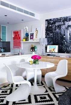 Tengo que decir que me gustan por separado, la silla Panton me encanta como silla de escritorio!! Y la mesa la verdad es que me gusta en cualquier lugar!!