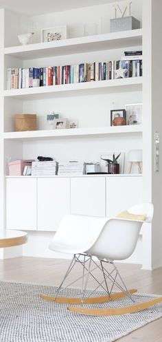 Fijaos aquí como queda con el balancín tipo Eames y los puffs de mimbre de Ikea.